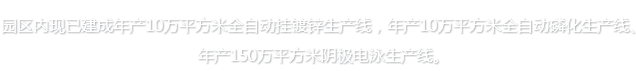 特點(diǎn): 采用美國(guó)PPG公司的環(huán)保型陽(yáng)離子陰極電泳涂料(符合歐盟ROHS環(huán)保指標(biāo)要求),產(chǎn)品鹽霧性、附著力、耐沖擊、耐彎曲性等方面居于同行業(yè)領(lǐng)先地位。 產(chǎn)能: 150萬(wàn)平方米/年。
